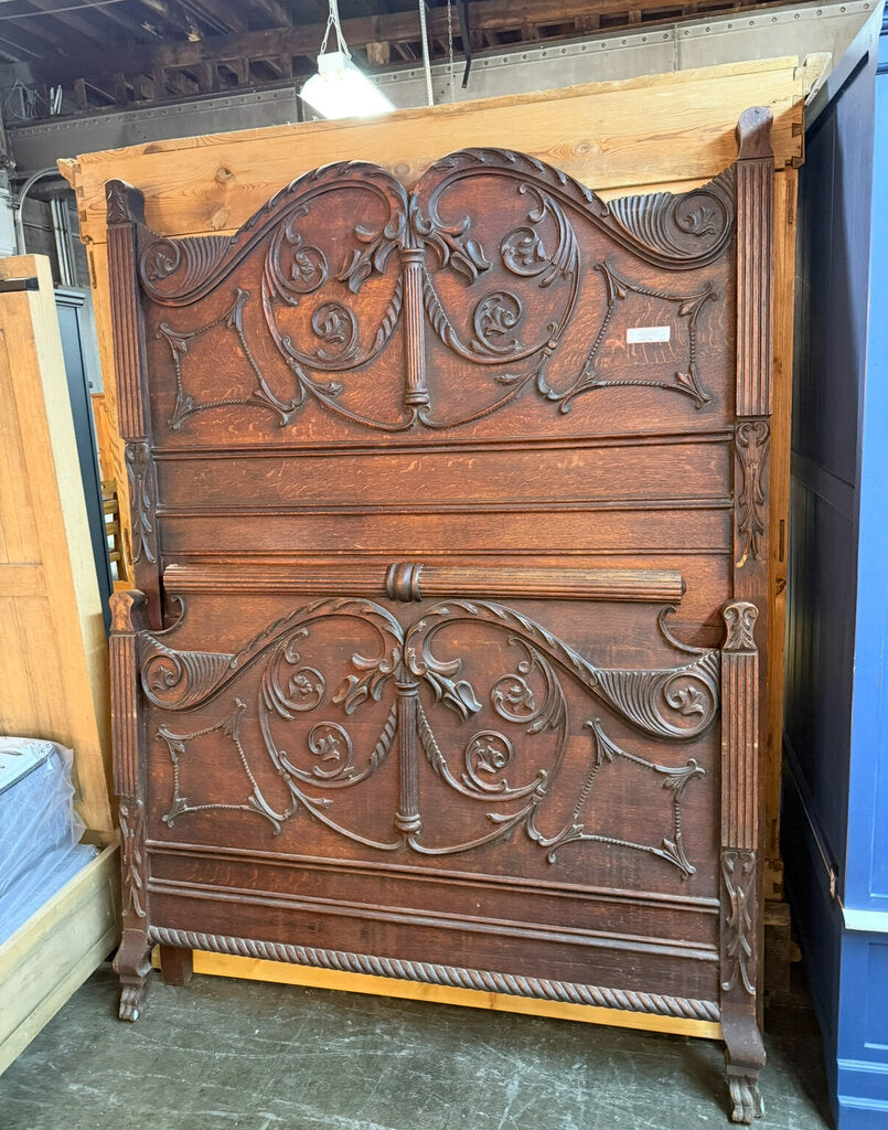 Antique Ornate Carved Mahogany Full Bed