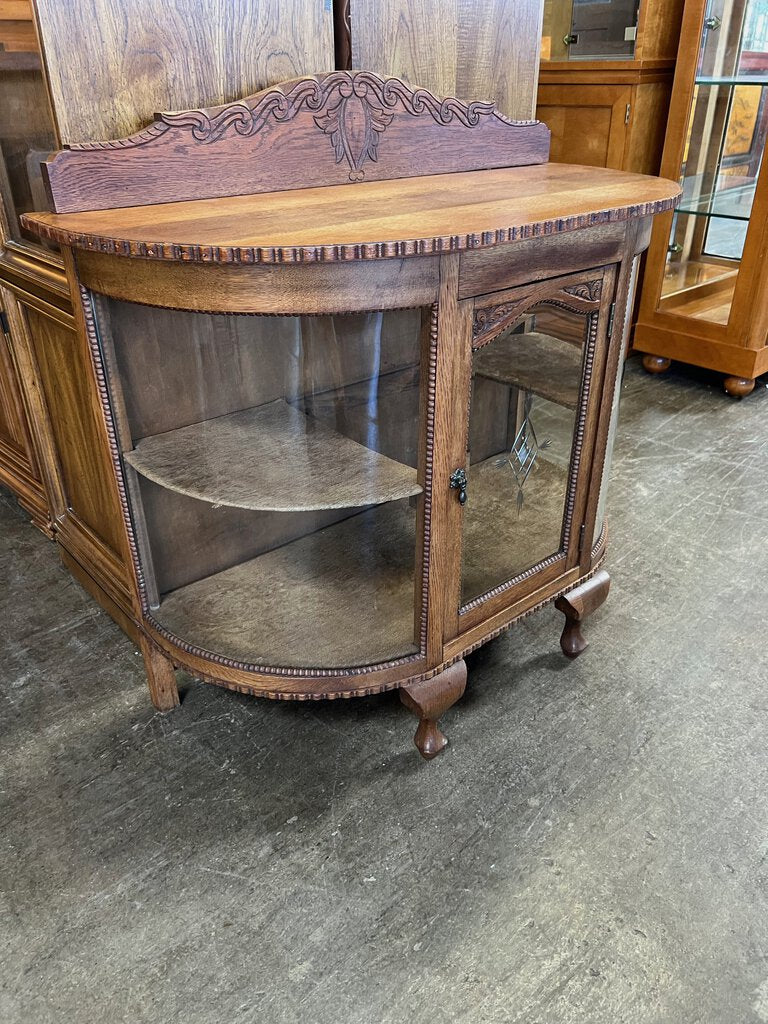 Antique Oak Curved Curio Cabinet