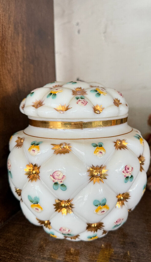 Vintage milk glass quilted jar w/ lid